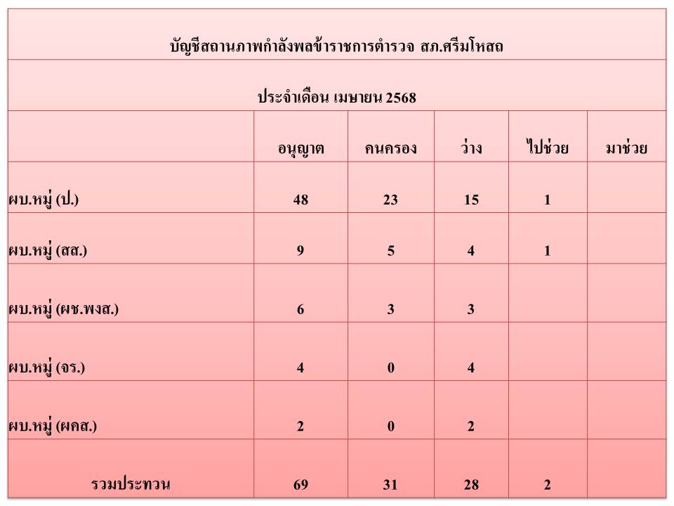 จัดทำข้อมูล ณ  วันที่ 1 เมษายน 2568